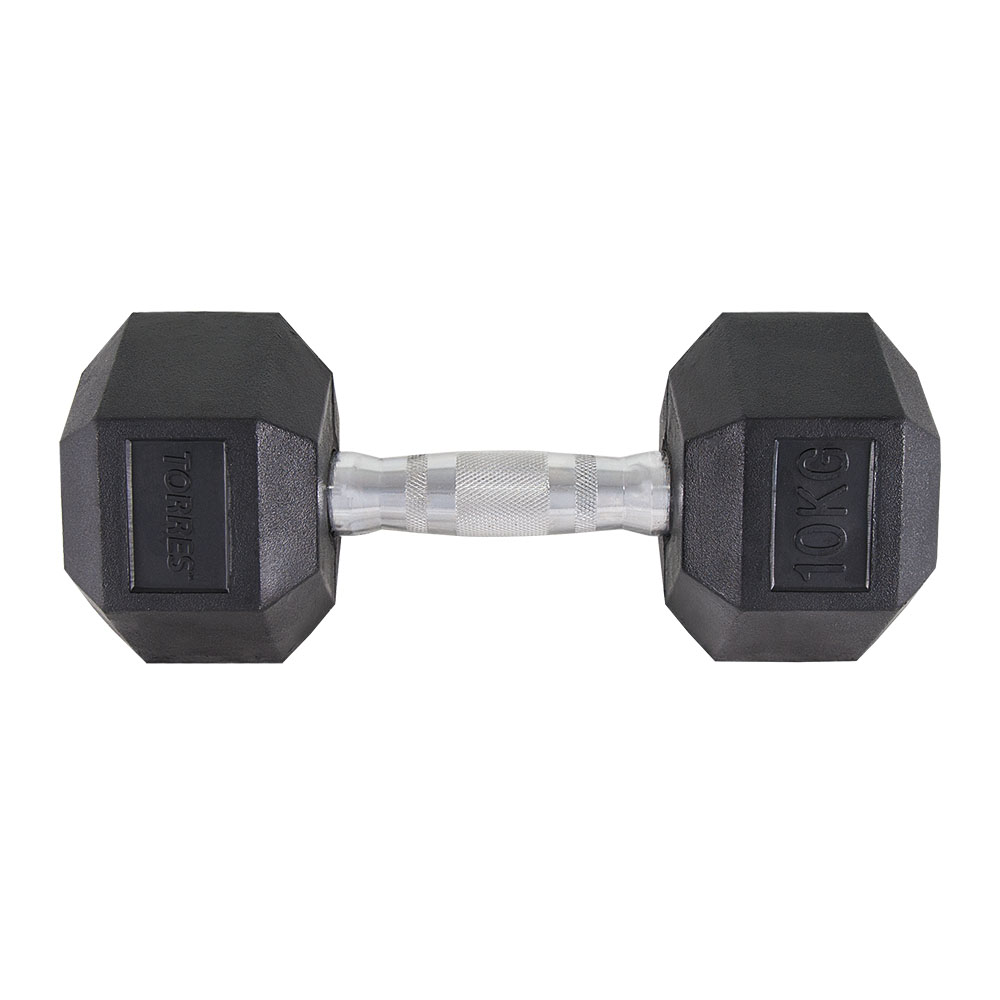 Гантель металлическая TORRES в резиновой оболочке, Вес 10 кг