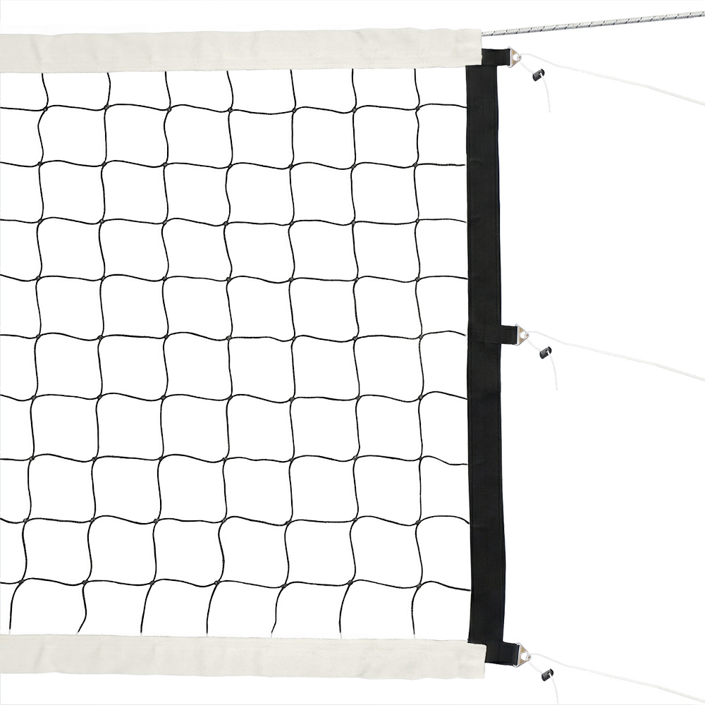 Сетка волейбольная профессиональная FS-V-№10 с боковыми вставками, размер 9,5х1м, нить 3,5 мм полипропилен (ПП), ячейка 10 см, верхняя лента 7 см ПП, нижняя и боковые ленты 5 см ПП, бок. сторона 5см, кевларовый трос 12 м, 6 нейлоновых шнуров для натяжения. Цвет черный.