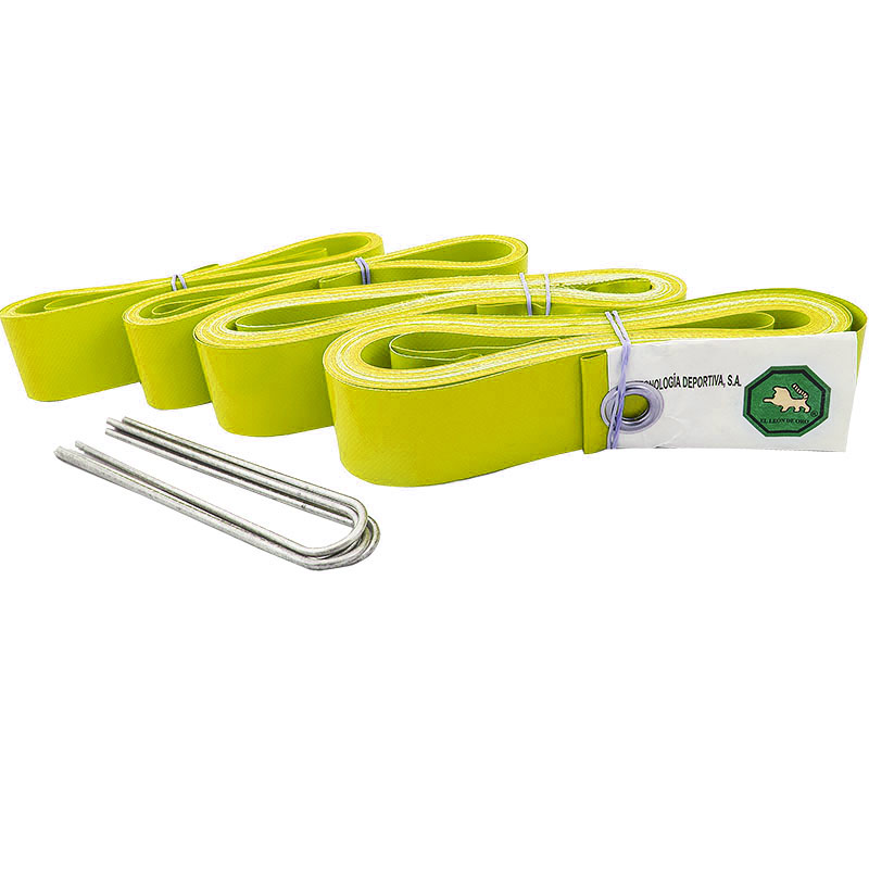 - 4 металлических штыря для соединения лент через люверсы и углубления в поверхность игровой площадки для натяжения разметки.